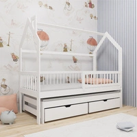 Łóżko dziecięce Miki 80x170 cm białe łóżko 2 osobowe wysuwane do pokoju dziecka łóżko domek wykonane z litego drewna sosnowego