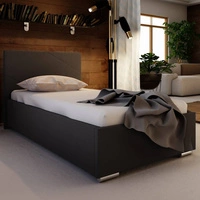 Łóżko kontynentalne Casey 90x200 grafitowe w nowoczesnym skandynawskim stylu z tapicerowanym zagłówkiem łóżko z pojemnikiem