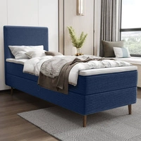 Łóżko kontynentalne Norco 90x200 niebieskie stylowe łóżko z pojemnikiem oświetlenie umieszczone w zagłówku nadaje wyjątkowości