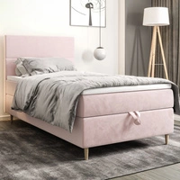 Łóżko kontynentalne Bing 120x200 pudrowy róż w nowoczesnym skandynawskim stylu z tapicerowanym zagłówkiem łóżko z pojemnikiem