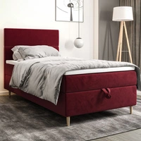 Łóżko kontynentalne Bing 90x200 bordowe w nowoczesnym skandynawskim stylu z tapicerowanym zagłówkiem łóżko z pojemnikiem