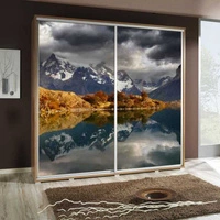 Szafa przesuwna Artistino 155 cm z grafiką zima korpus szafy w kolorze wenge wykonany z płyty o grubości 22mm