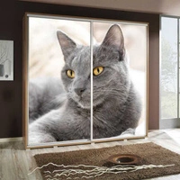 Szafa przesuwna Artistino 205 cm z grafiką kot korpus szafy w kolorze dąb catania wykonany z płyty o grubości 22mm