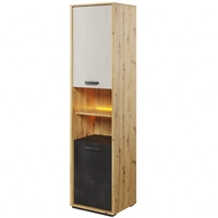 Regał Qubic 50 cm dąb artisan / raw steel / silk flou designerski regał z drzwiami i oświetleniem ledowym oryginalnie wsunięte fronty