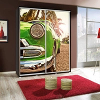 Szafa przesuwna Artistino 155 cm z grafiką samochód II korpus szafy w kolorze wenge wykonany z płyty o grubości 22mm