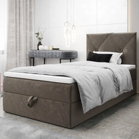 Łóżko kontynentalne Casey 90x200 jasny brąz w nowoczesnym skandynawskim stylu z tapicerowanym zagłówkiem łóżko z pojemnikiem