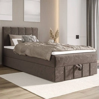 Łóżko kontynentalne Arvada 90x200 jasny brąz w nowoczesnym skandynawskim stylu z tapicerowanym zagłówkiem łóżko z pojemnikiem