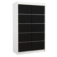 Szafa przesuwna Benisso 120 cm biały / czarny praktyczna szafa do sypialni fronty wykończone poziomymi srebrnymi listwami