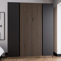 Szafa Kastano XIII 200 cm dąb evoke / czarny stylowy design uchwyty krawędziowe drzwi szafy ozdobione lamelami w kolorze dąb evoke