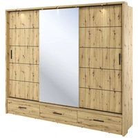 Szafa przesuwna z lustrem Arti 250 cm dąb artisan pojemna szafa do sypialni lub przedpokoju drzwi szafy wykończone dużymi lustrami