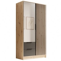 Szafa przesuwna z lustrem Delia 100 cm dąb artisan stylowa szafa z ozdobnymi lamelami w kolorze drewna wpasuje się do każdej aranżacji