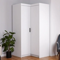 Szafa narożna Rene biała nowoczesny design obrzeża wykończone ABS fronty szafy do sypialni o matowym wykończeniu czarne uchwyty