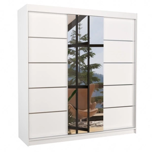 Szafa przesuwna z lustrem Rico 250 cm biała pojemna szafa do sypialni garderoby lub przedpokoju klasyczna forma o geometrycznych kształtach