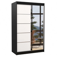 Szafa przesuwna z lustrem Nicea 120 cm czarny / biały pojemna szafa do sypialni z ozdobnymi listwami ergonomiczny układ wnętrza