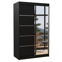 Szafa przesuwna z lustrem Nicea 120 cm czarna pojemna szafa do sypialni z ozdobnymi listwami ergonomiczny układ wnętrza