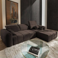 Narożnik z funkcją spania Cetara brązowy prawostronny stylowy design komfortowe przesuwane oparcia regulowane zagłówki