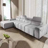Narożnik z funkcją spania Castel IV szary popiel lewostronny stylowy narożnik z pojemnikami na pościel i regulowanymi zagłówkami