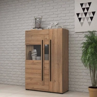 Witryna Larona 65 cm sibiu larche / sonoma truffel elegancka witryna do salonu prosta bryła idealna do każdego wnętrza elementy z bezpiecznego szkła hartowanego
