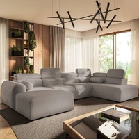 Narożnik z funkcją spania Cantare VIII ciemny beż lewostronny gustowny narożnik z regulowanymi zagłówkami pojemniki na pościel