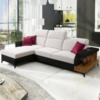 Narożnik z funkcją spania Bresso czarny / biały prawostronny narożnik z praktyczną półką w kolorze czarnym regulowane zagłówki
