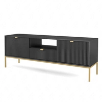 Szafka RTV Lovro 154 cm czarna nowoczesny design zachwyci miłośników wyrazistych wnętrz złote metalowe dodatki
