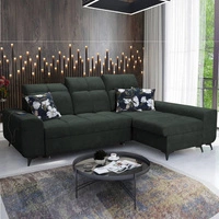 Narożnik z funkcją spania Buffalo zielony prawostronny funkcjonalny i stylowy narożnik rozkładany z pojemnikiem na pościel
