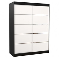 Szafa przesuwna Luft 150 cm czarny / biały praktyczna szafa do sypialni fronty wykończone poziomymi srebrnymi listwami