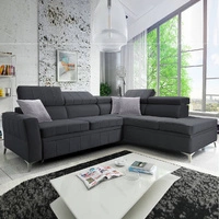 Narożnik z funkcją spania Nausa III szary prawostronny velvet stylowy komfortowy narożnik regulowane zagłówki pojemnik na pościel