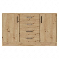 Komoda z szufladami Caspe 140 cm dąb artisan nowoczesny design mebla obrzeża komody wykończone specjalną okleiną ABS