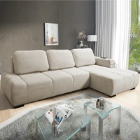 Narożnik z funkcją spania Cetara XII beżowy lewostronny stylowy design komfortowe przesuwane oparcia dwa pojemniki na pościel