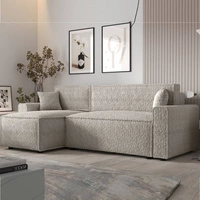 Narożnik z funkcją spania Brandon Bis kremowy lewostronny miękka tkanina o charakterystycznej pętelkowej powierzchni pojemnik na pościel