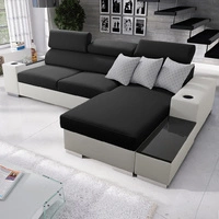 Narożnik z funkcją spania Provo czarny / biały prawostronny narożnik z pojemnikiem na pościel i funkcjonalną dostawką