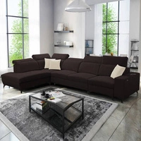 Narożnik z funkcją spania Elgin brązowy lewostronny narożnik z regulowanymi zagłówkami praktyczne szuflady w boczkach mebla