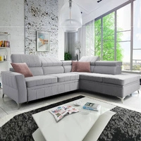 Narożnik z funkcją spania Rava III szary popiel prawostronny velvet komfortowy narożnik z regulowanymi zagłówkami i pojemnikiem na pościel