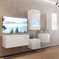 Meblościanka Termo biała / biały połysk modna i stylowa meblościanka do salonu z bezuchwytowym systemem otwierania drzwi push to open