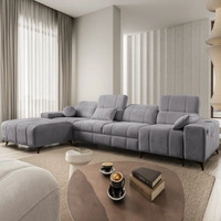 Narożnik z funkcją spania Penejos XI szary lewostronny wygodny narożnik z regulowanymi zagłówkami i dwoma pojemnikami na pościel