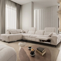 Narożnik z funkcją spania Penejos VII beżowy lewostronny stylowy narożnik z pojemnikiem na pościel wygodne regulowane zagłówki