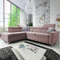 Narożnik z funkcją spania Rava III lawendowy róż lewostronny velvet komfortowy narożnik z regulowanymi zagłówkami i pojemnikiem na pościel