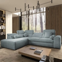 Narożnik z funkcją spania Viano VII szary błękit lewostronny modny i stylowy narożnik z regulowanymi zagłówkami ozdobne poduszki