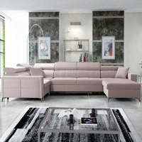 Narożnik z funkcją spania Fogu U II indyjski róż wygodny narożnik z komfortowymi podłokietnikami ciekawy design pojemnik na pościel