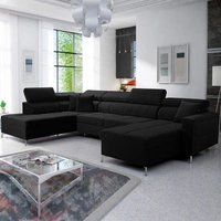 Narożnik z funkcją spania Nausa VI czarny prawostronny stylowy narożnik do salonu o komfortowym wykończeniu miękka tkanina typu velvet