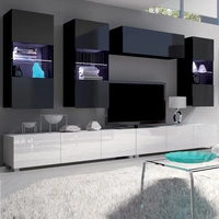 Meblościanka Apulia V biały połysk / czarny połysk wyjątkowo stylowa meblościanka proste bryły wpisujące się w każde wnętrze