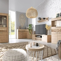 Zestaw mebli Natural dąb ribbeck nietuzinkowa meblościanka do salonu wzbogacona oświetleniem LED ozdobne listwy na frontach szuflad