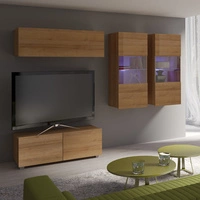 Zestaw mebli Apallo dąb brandy castello nowoczesny design bryły osadzone na metalowych nogach meblościanka do salonu wysokie ranty blatów