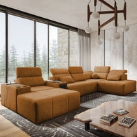 Narożnik z funkcją spania Tesalia V miodowy lewostronny komfortowy narożnik z szufladą oraz funkcją przesuwanego oparcia