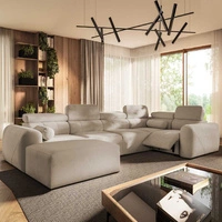 Narożnik z funkcją spania Cantare IV Lux beżowy lewostronny starannie wykonany narożnik do salonu z podnoszonym podnóżkiem
