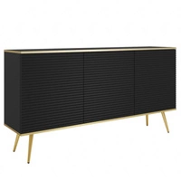 Komoda Luxury 160 cm czarna elegancki design stylowe ryflowane fronty korpus komody zwieńczony złotą listwą złote metalowe nogi