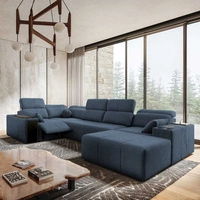 Narożnik z funkcją spania Tesalia IV Lux niebieski prawostronny stylowy narożnik z wysuwanym podnóżkiem oraz funkcją przesuwanego oparcia