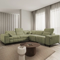 Narożnik z funkcją spania Penejos II Lux oliwkowy lewostronny wygodny narożnik do salonu z komfortowym wysuwanym podnóżkiem