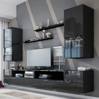 Meblościanka Metoni czarna / czarny połysk uniwersalna i stylowa meblościanka do salonu minimalistyczny design w nowoczesnej aranżacji